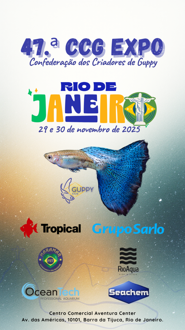 A CCG está sempre ao lado dos apaixonados por guppies, lebistes, guppys (Poecilia reticulata) em todo o país. Em 2025, temos o prazer de realizar nossa 47.ª exposição presencial em uma das cidades mais icônicas do Brasil: o Rio de Janeiro.
